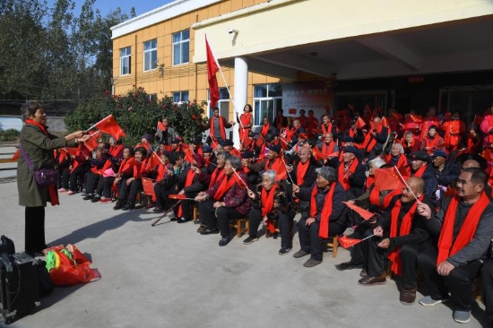 近年來,商水縣依托各鄉鎮敬老院、衛生院認真開展醫養結合工作,使全縣數千特困老人集中生活、統一醫療,實現了老有所養、老有所醫、老有所樂,讓他們過上了幸福的晚年生活。圖為練集鎮醫養結合敬老院在組織院民唱紅歌、看演出。②18記者付永奇攝