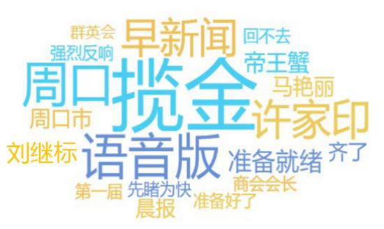 網絡熱詞反映了網民關注的重點,詞云圖中大大的“攬金”二字占據(jù)詞云圖中央,可見攬金是真的攬金,據(jù)悉,首屆周商大會簽約項目31個,總投資達429.7億元人民幣?!霸S家印”“馬艷麗”在整個圖中也是光彩奪目,作為周口人,走上北上廣深的成功人士還心心念念家鄉(xiāng)的發(fā)展,讓老鄉(xiāng)們倍感溫暖,家鄉(xiāng)人關注他們?yōu)榧亦l(xiāng)發(fā)展做出的努力和他們的動態(tài)也是再正常不過了。