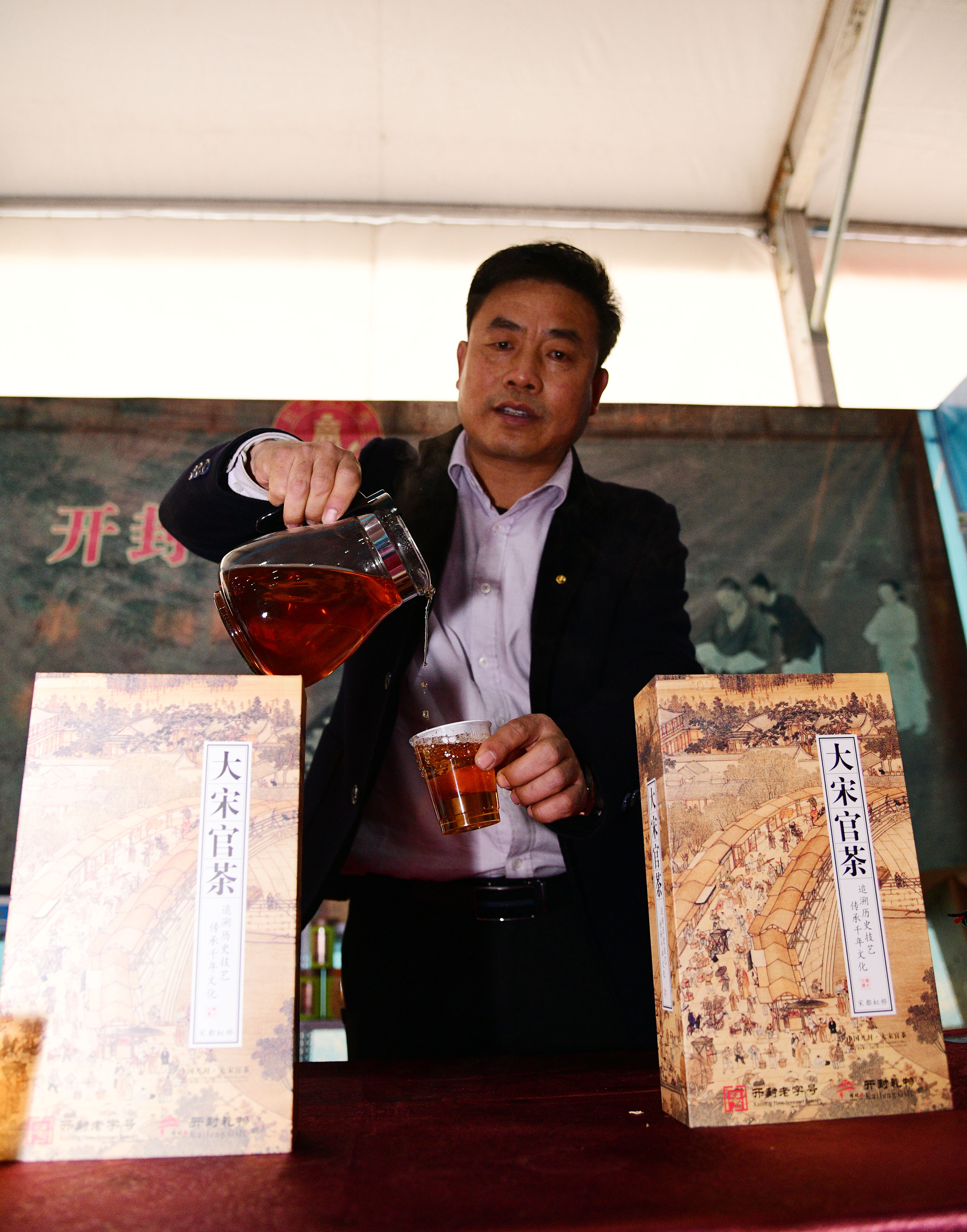 在展會上給顧客講述大宋官瓷品相的董俊,也是很厲害的周口企業家,能夠把開封老字號的官瓷,運營得風生水起,大宋官瓷瓷器和汴繡被譽為七朝古都象征性的物產,還有大宋官茶,含有被譽為茶中黃金的“金花菌”,是“河南老字號”、“非物質文化遺產”,也被選入“首屆開封禮物”。大宋官茶源于宋神宗(公元1068年),它今天的主人是淮陽區新站籍企業家牛華麗,這位淮陽籍漢子從小在開封長大,對大宋官茶獨有情種,現在是大宋官茶掌舵人,是大宋官茶非遺傳承人。而福興齋桶子雞老總馬勇是沈丘人,這是開封的名吃,去開封旅游,吃桶子雞和小籠包,成為游客必須品嘗的美味。馬勇參加周商大會帶回周口的桶子雞深受家鄉人的喜歡,一直熱賣。而“鞋品”鞋的老總侯建峰是鄲城人,他在廣州設有代加工廠,鞋子以河南為主要市場,在開封城由五個專賣店,同時也銷往全國。