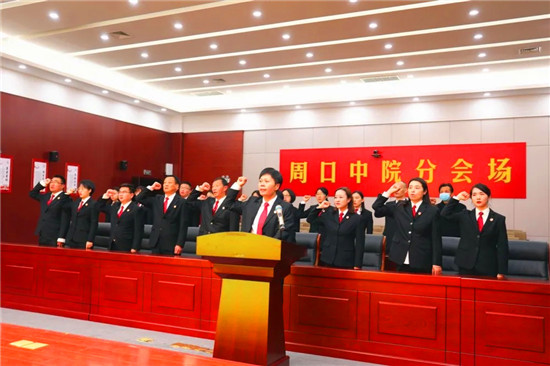 年末歲尾,在各審判庭一線工作忙碌的各辦案團隊,同樣右手舉拳,莊嚴誦讀誓詞。