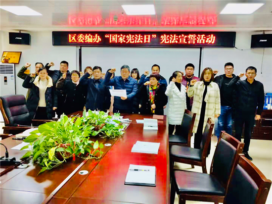 “我宣誓:忠于中華人民共和國憲法,維護憲法權威,履行法定職責,忠于祖國、忠于人民,恪盡職守、廉潔奉公,接受人民監督,為建設富強、民主、文明、和諧、美麗的社會主義現代化強國努力奮斗!”12月4日上午,淮陽區委編辦主任張命令,帶領全體干部職工一起宣誓,洪亮而鏗鏘的誓言響徹宣誓現場。