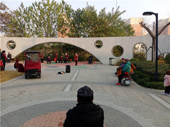 12月10日,雖然氣溫不高,可是天空暖陽(yáng)高照,在周口中心城區(qū)建安路上的一個(gè)街頭游園內(nèi),不僅聚集了前來(lái)休閑的老人,還有不少戲迷朋友,她們手拿話筒,唱起戲曲節(jié)目,讓人樂(lè)在其中。記者 張洪濤 攝