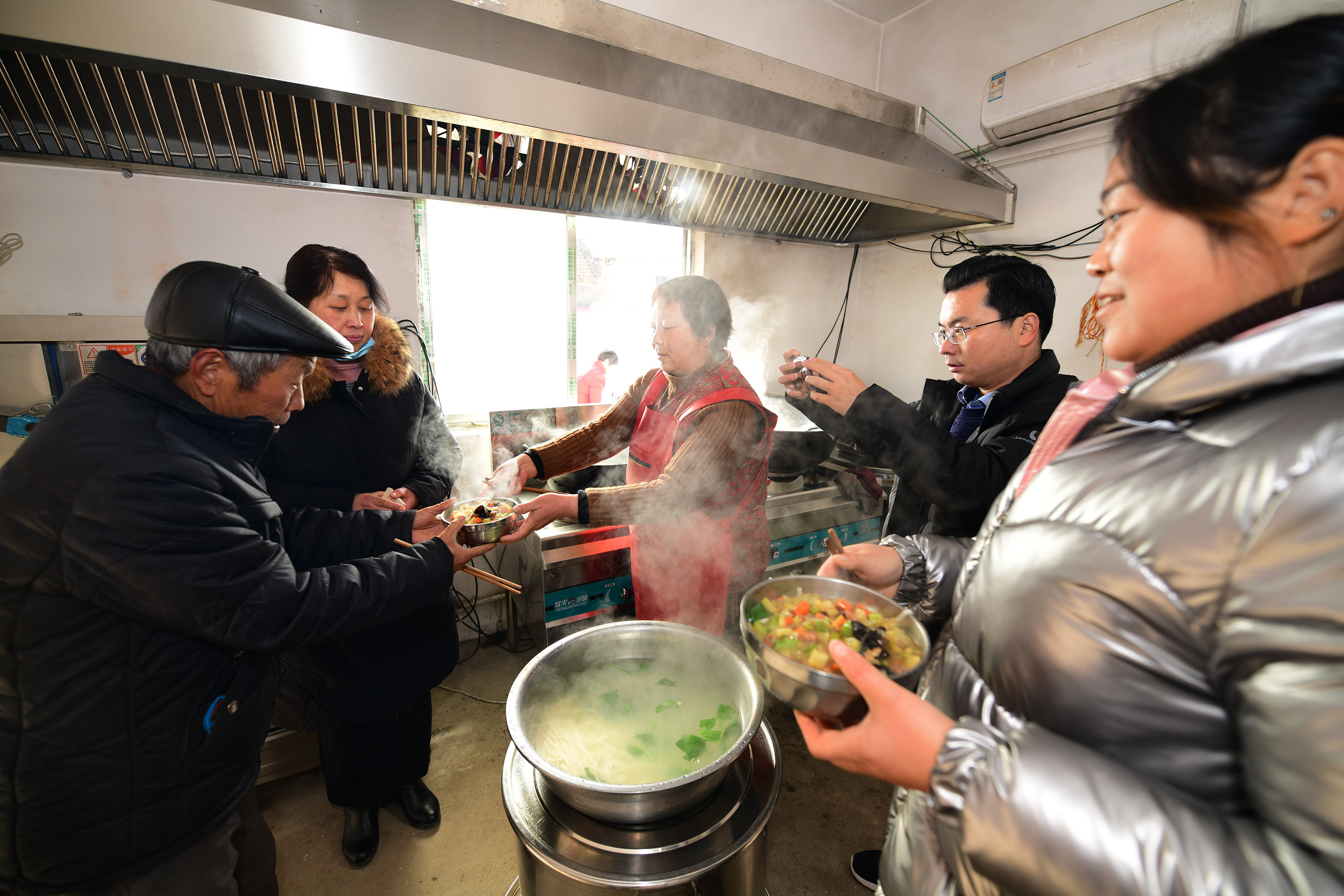 “開飯嘍!”隨著一聲喊,十幾位老人走進炊煙裊裊、菜飯飄香的小院,拿著碗和積分卡,排隊打飯。這是12月15日中午,記者在西華縣奉母鎮七里倉二村看到村食堂開飯的場景。老人每人一碗臊子面,吃得渾身熱乎乎的。這一勺飯,讓這里的老人長壽幸福,從此不再怕風雨不再畏嚴寒。這一勺飯,是七里倉二村今年實施土地治理后的村集體公糧,也是實施土地承包制40年來村集體里的首份余糧。