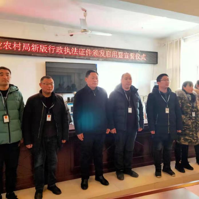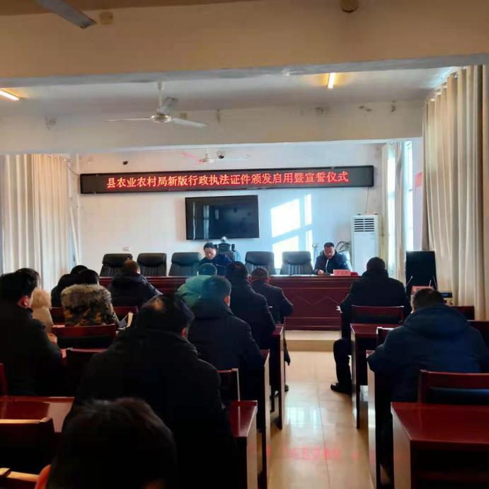 “我鄭重向祖國(guó)、向人民宣誓:忠于國(guó)家,忠于人民,忠于憲法和法律;堅(jiān)持執(zhí)法為民,堅(jiān)持依法行政,維護(hù)公平正義;以維護(hù)人民群眾利益、維護(hù)法律權(quán)威為已任,有法必依,違法必究,認(rèn)真履行法定職責(zé)。”12月31日上午9時(shí),鹿邑縣農(nóng)業(yè)農(nóng)村局在三樓會(huì)議室召開新版農(nóng)業(yè)綜合行政執(zhí)法證件頒發(fā)啟用暨宣誓儀式大會(huì)。該局局長(zhǎng)陳東振為51名執(zhí)法人員辦法了新版行政執(zhí)法證并提出具體要求。副局長(zhǎng)丁文杰主持宣誓儀式大會(huì)并領(lǐng)誓。