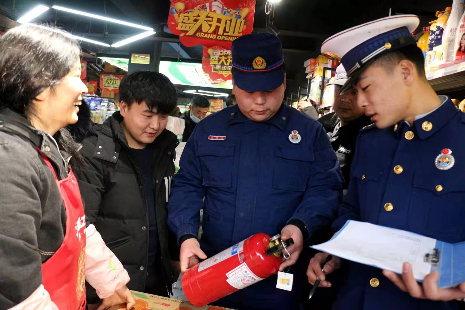 連日來,為加強冬季防火安全,做到防火患于未“燃”,扶溝縣組織應急辦、微型消防站和派出所等部門執(zhí)法人員,對轄區(qū)的商場、賓館、飯店等人員密集場所的消防安全進行檢查,全力筑牢冬季消防安全“防火墻”。 圖為1月15日,扶溝縣崔橋鎮(zhèn)執(zhí)法人員在一商場進行消防安全檢查。