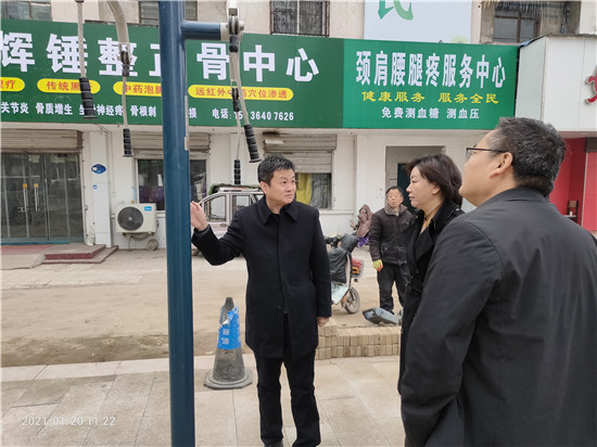 1月20日上午,區長李湛實地督導示范街區建設和老舊小區改造工作。區委常委、宣傳部長、區政府黨組成員王艷,以及區住建、城管部門負責同志參加活動。