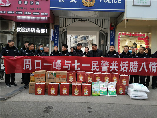 “臘八,臘八,凍掉下巴。”臘八前后是一年里最為寒冷的時(shí)節(jié)。1月20日臘八節(jié)當(dāng)天,愛(ài)心企業(yè)為川匯區(qū)公安分局七一路派出所民警送來(lái)慰問(wèn)品,讓一線基層民警倍感溫暖。該分局副局長(zhǎng)周保、治安大隊(duì)長(zhǎng)袁剛專(zhuān)程趕到慰問(wèn)現(xiàn)場(chǎng),代表分局黨委對(duì)愛(ài)心企業(yè)的到來(lái)表示感謝。