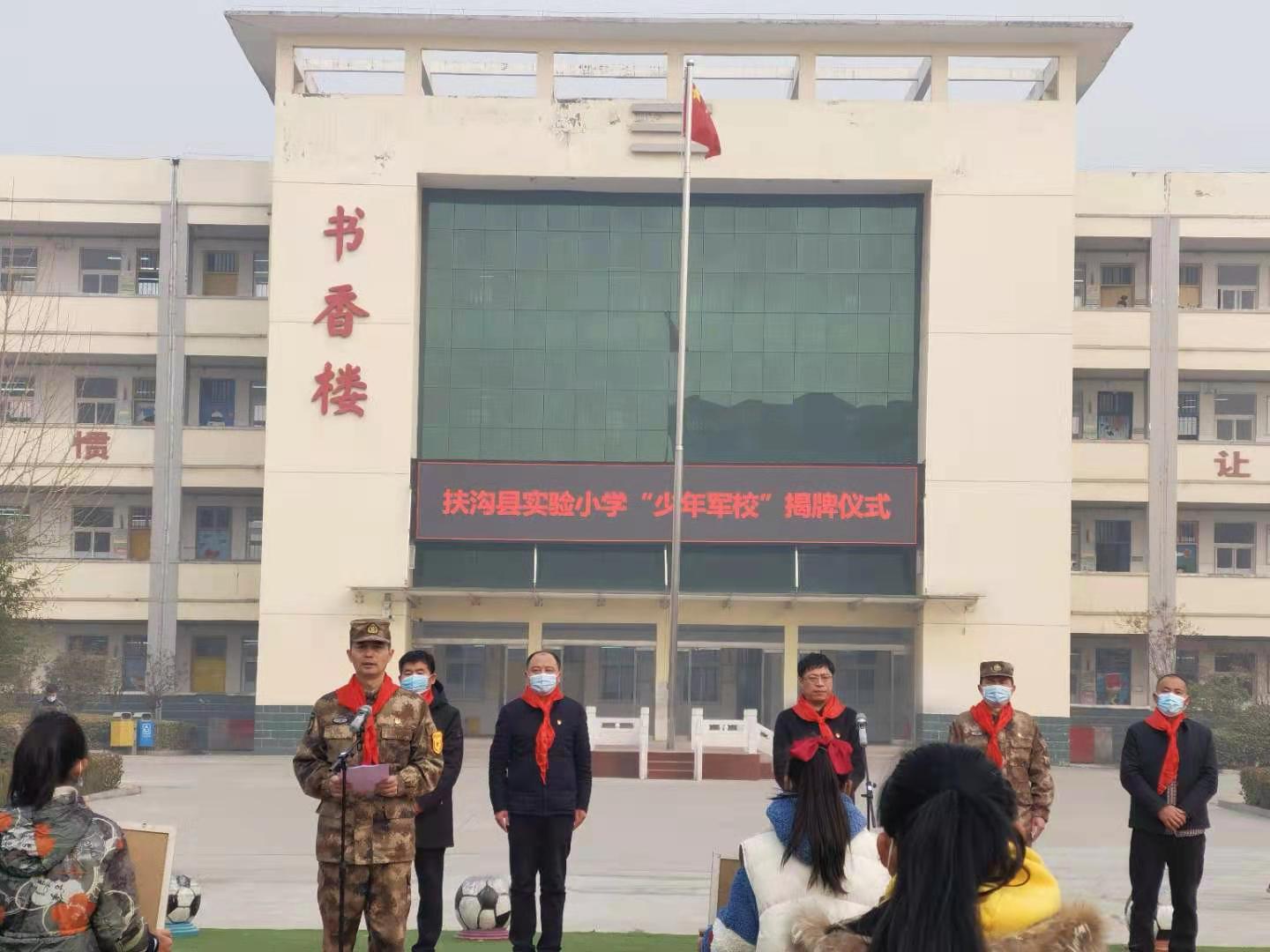 1月22日上午,扶溝第一所少年軍校揭牌儀式在扶溝縣實驗小學舉行??h委常委、縣人武部政委閆忠玉,縣人武部副部長左永剛,縣教體局局長葛偉,縣退役軍人事務局局長謝自強等出席活動。