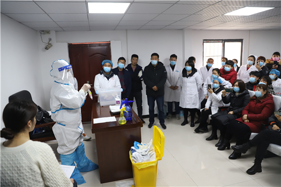本次培訓內容主要包括衛生檢驗、流行病學調查、消殺。在各專業培訓中,首先由李埠口鄉衛生院院長范建華就我市新冠肺炎疫情防控的政策、機構建設、工作流程、防控措施、風險點,以及下步工作任務進行了詳細講解。隨后,周口市人民醫院感控科副科長聶風杰對疫情防控工作中個人防護要點及防護服的穿脫步驟進行了現場操作演練。周口市人民醫院發熱門診護士王越、感控科科員張曉露對新冠病毒核酸檢測采樣方法、個人防護、樣本存取轉運及交接流程等內容進行了講解,并現場演示防護用品穿脫、口咽拭子、鼻咽拭子樣本采集等操作方法。港區文教衛科技辦公室相關負責人表示,本次培訓,既著眼當前疫情的防控需要,又放眼衛生應急隊伍的長遠發展,為進一步提高港區衛健系統疫情防控應急處置能力、努力筑牢全區廣大人民群眾生命和身體健康的防控堡壘起到了有力的技術支撐。③5