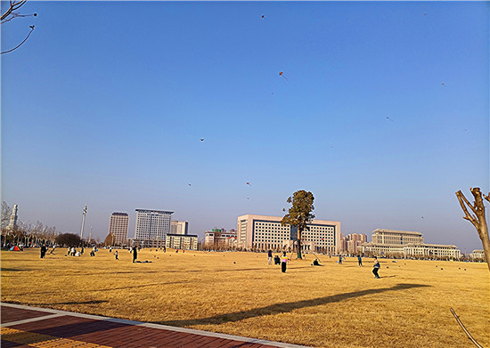 2月5日,我市天氣晴朗,不少市民帶著孩子來到戶外,享受溫暖的陽光、和煦的春風(fēng)、與孩子一起放紙鳶的天倫之樂。