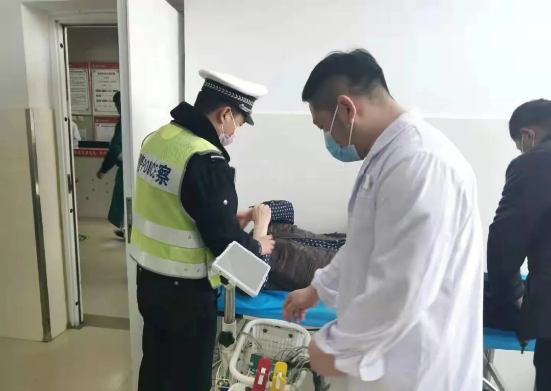 接到求助后,三位輔警隊員立即向隊長劉國同匯報情況,并請求沿途執勤民警幫助疏導,隨后駕駛警車,鳴起警笛一路護航。僅用20分鐘便將老人安全護送到周口市中心醫院急診中心,并幫助老人家屬辦理了住院手續,病人家屬向交警們表示由衷的感謝,幾位交警一直守護老人到病情穩定才離開。