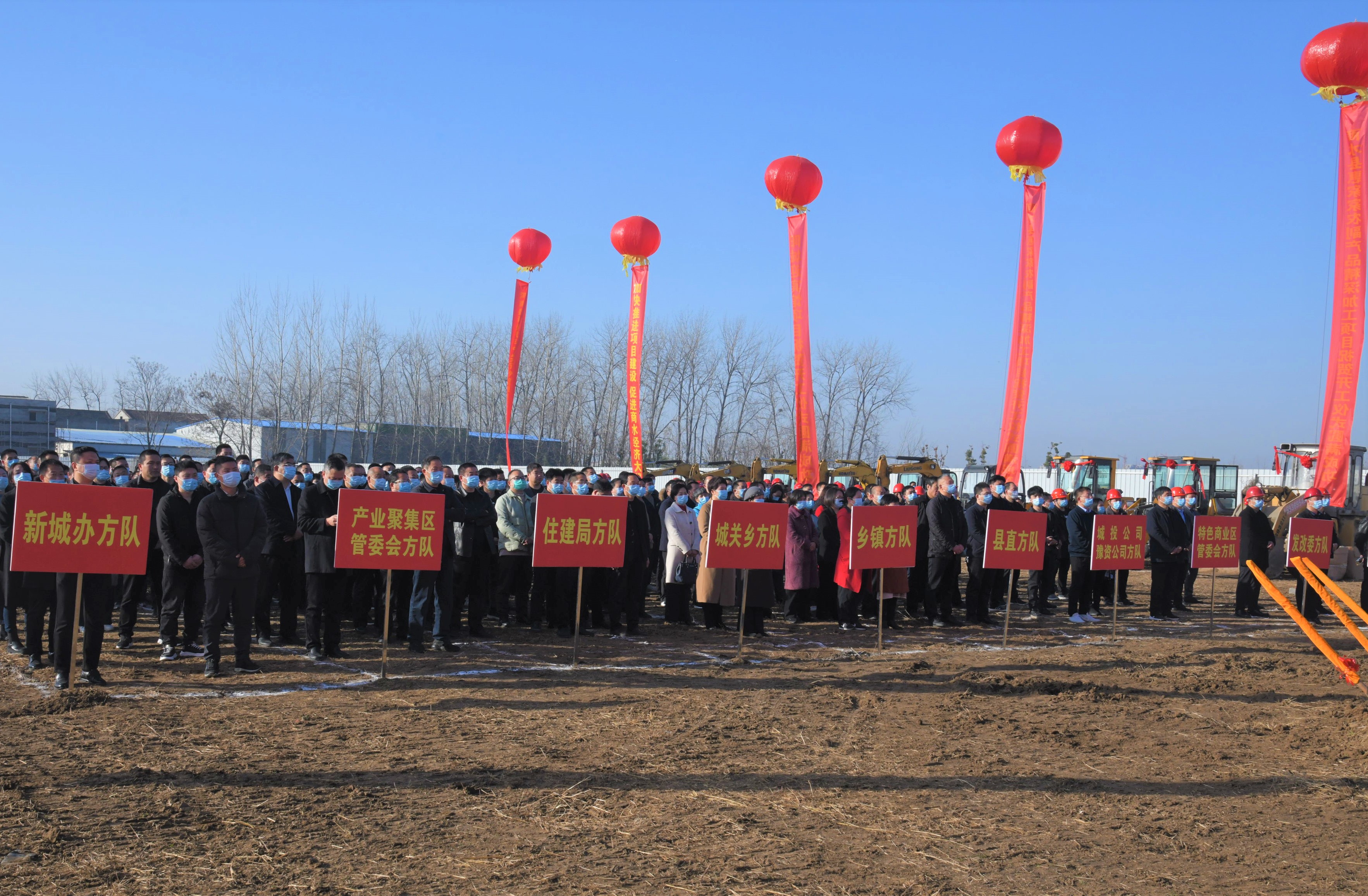 縣委副書記張峰,縣政協主席孫培忠,縣委常委王衛東、王中紅、何海中、楊敏,副縣長陳新民、朱高建、龐艷杰、潘建甫,縣政府黨組成員、縣產業集聚區管委會主任馬三華等出席開工儀式并為項目開工培土奠基。