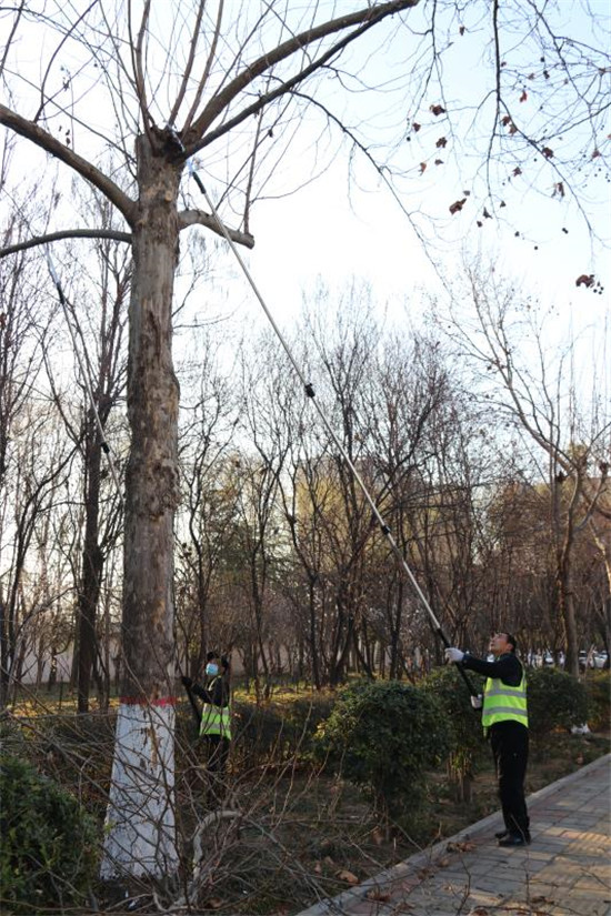 2月21日,城鄉(xiāng)一體化示范區(qū)城管局幾名市政管理人員在修剪周口大道兩旁的行道樹。據(jù)了解,通過一年的生長,行道樹衍生了許多無用枝條,如果對這些無用枝條不進(jìn)行修剪,勢必影響今年的長勢。目前,道路兩邊的行道樹開始發(fā)芽,正是一年當(dāng)中修剪的有利時機。城鄉(xiāng)一體化示范區(qū)城管局每天出動三班技術(shù)人員,對轄區(qū)內(nèi)的行道樹進(jìn)行修剪。