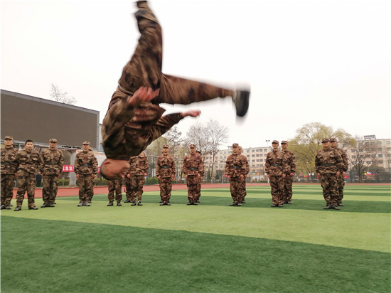 “我自幼習(xí)武,自愿當(dāng)兵,我申請(qǐng)到祖國(guó)最邊遠(yuǎn)的地方戍守邊關(guān)……”2月25日下午,在商水縣預(yù)訂新兵役前訓(xùn)練現(xiàn)場(chǎng),面對(duì)前來(lái)檢查工作的周口市征兵辦副主任、周口軍分區(qū)動(dòng)員處處長(zhǎng)付志遠(yuǎn),“準(zhǔn)新兵” 省國(guó)振說(shuō)出了自己的入伍決心,并現(xiàn)場(chǎng)表演了一套“少林武功”。
