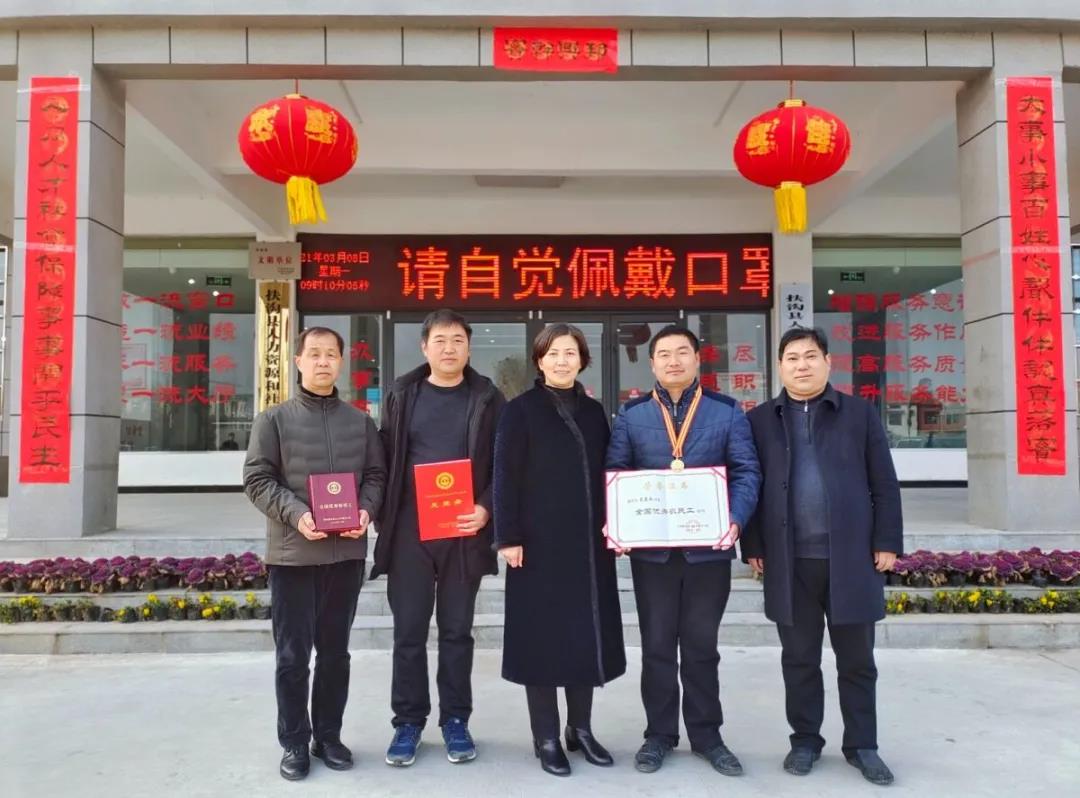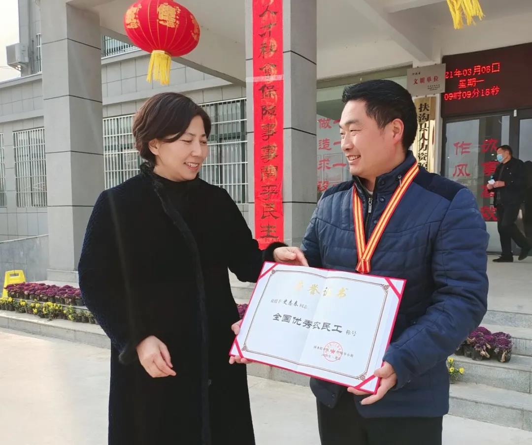 3月8日,在扶溝縣人社局辦事大廳門前,縣人社局黨組書記、局長張艷玲將“全國優秀農民工”獎章、榮譽證書、光榮冊送到河南省天驕樂器股份有限公司木工段段長史志春手上,對其獲得“全國優秀農民工”榮譽稱號表示祝賀,勉勵他珍惜榮譽、再接再厲,以更優異的成績,為扶溝縣鄉村振興加油助力。②7