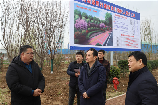 為督導(dǎo)綠化建設(shè)工作落實情況,推進綠化建設(shè)工程進度,3月11日,周口港區(qū)管委會主任程若光率隊到轄區(qū)各綠化建設(shè)項目地點實地督導(dǎo)檢查,并召開工作推進會,對該項工作做進一步安排部署。港區(qū)黨委委員、管委會副主任李翔及項目責(zé)任單位、施工單位負責(zé)人參加。