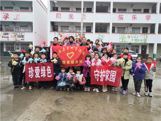 3月11日,沈丘縣自然資源局組織黨員志愿者深入到卞路口鄉趙樓小學,積極開展“珍愛綠色 守護家園”植樹節進校園志愿宣傳活動。