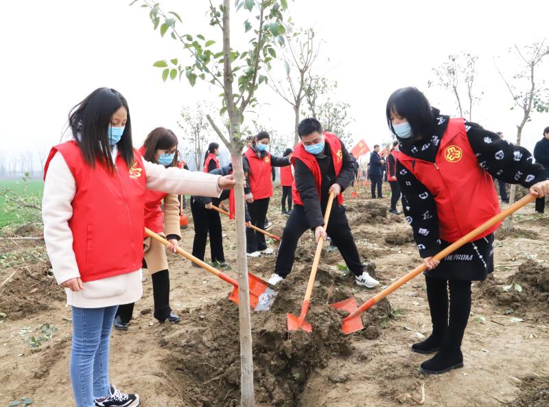 草長鶯飛,春回大地。3月12日,在第43個植樹節(jié)之際,全市掀起義務(wù)植樹熱潮,黨員干部、志愿者、市民踴躍參與義務(wù)植樹活動。扶正樹苗、揮鍬培土、分層踩實、堆起圍堰、提水澆灌,認真地完成著每一道工序,栽下了一棵棵樹苗,為改善生態(tài)環(huán)境、綠化美麗家園種下了一棵棵綠色的希望。圖為鄲城縣義務(wù)植樹現(xiàn)場。