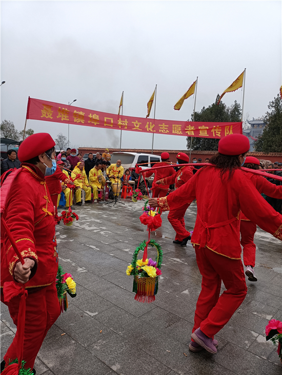 二月二,龍抬頭。3月14日,西華縣女媧城門前的廣場上,寫著“聶堆鎮埠口村文化志愿者宣傳隊”的紅色條幅前吸引了眾多游人。這些志愿者們用群眾喜聞樂見的舞獅、戲曲等傳統文藝節目,自編自演脫貧攻堅給村民們帶來的新變化,宣傳黨的富民政策,鼓勵大家參與到鄉村振興工作中。