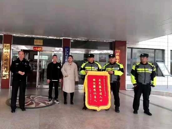 3月16日上午8時,鄲城縣新城區響盤莊行政村張柿園村村民張小濤夫妻倆,將一面寫有“為民服務暖人心,排憂解難似親人”字樣的錦旗送到了鄲城縣交警大隊,感謝交警大隊鐵騎中隊護送他們迷路的孩子回家。