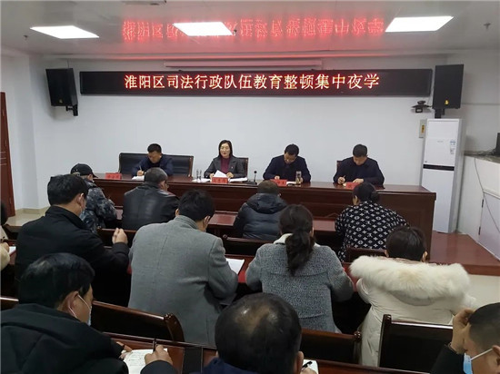 近日,淮陽區司法局開展司法行政隊伍教育整頓集中夜學。區司法局領導班子全體成員,局機關以及18個司法所全體人員參加集中夜學,局黨組書記、局長段志偉主持學習會。