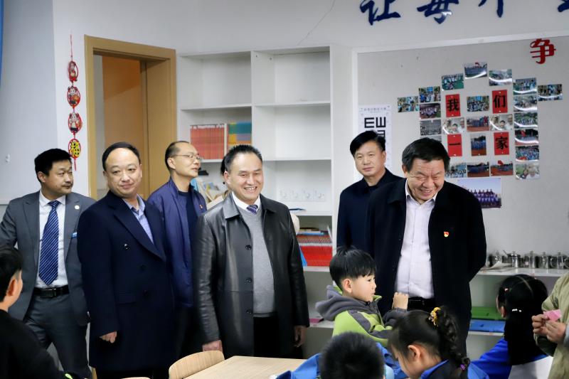 李宗喜一行走進學生宿舍、學校膳食中心、正在規劃中的國學文化廣場等地,詳細了解學校建設、管理情況。