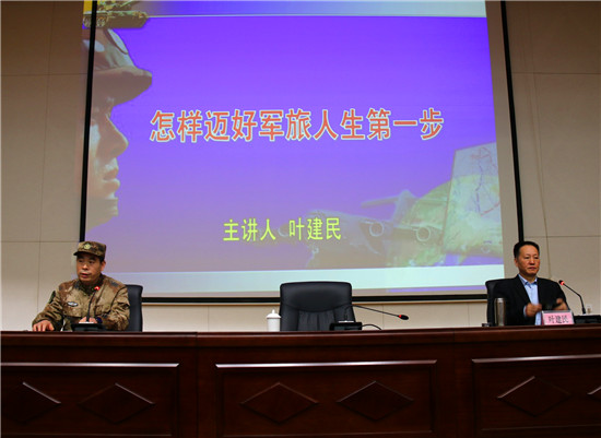 授課中,葉建民教授結合當前國際國內形勢和自身經歷,深刻剖析了強國強軍的重要意義。為即將參軍入伍的“準新兵”,如何端正入伍動機、適應部隊生活、弘揚尚武精神、立志軍營建功立業,指明了前進方向。葉教授整個授課見解獨到、分析透徹,語言精彩、內涵深刻,讓人深受啟發、獲益匪淺,授課過程中多次爆發熱烈的掌聲。