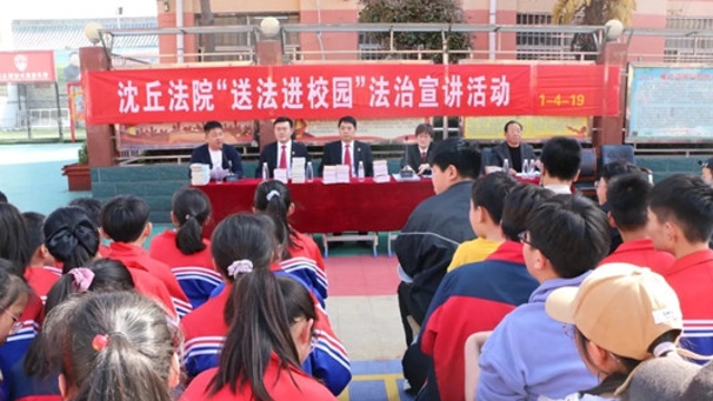 為更好護(hù)航未成年人健康成長,扎實(shí)推進(jìn)政法隊伍教育整頓“我為群眾辦實(shí)事”活動深入開展,切實(shí)發(fā)揮檢察機(jī)關(guān)派設(shè)法治副校長的作用,4月26日下午,周口市淮陽區(qū)人民檢察院聯(lián)合區(qū)公安局、區(qū)司法局走進(jìn)淮陽區(qū)鄭集鄉(xiāng)第二中學(xué),開展以“與法同行,健康成長”為主題的普法教育活動,向該校800余名師生宣講法律知識,交流互動。