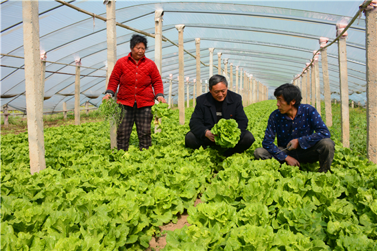 3月23日,商水縣平店鄉(xiāng)劉大莊村黨支部書記周思偉(中)和種植大戶周立新、張愛蓮夫婦查看菜苗及生菜長勢。該縣各級(jí)黨委采取“黨支部+扶貧基地+特色產(chǎn)業(yè)”等模式,發(fā)展了一大批特色產(chǎn)業(yè)基地,有效地促進(jìn)了農(nóng)業(yè)增產(chǎn)、農(nóng)民增收。②9