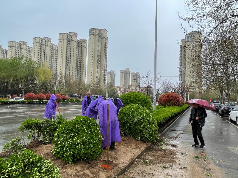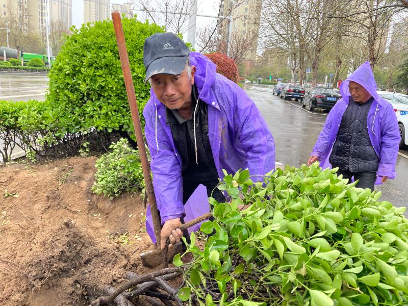 春天正是增綠補綠、扮靚城市“顏值”的好時機。3月26日下午,春雨淅淅瀝瀝,記者在市體育中心附近看到,園林工人正在冒雨移走綠植。據介紹,他們今天要把此地的綠植移走,以便后續種植花卉。綠植移走后,園林工人給空地蓋上防塵布,防止泥土被雨水沖到道路上。