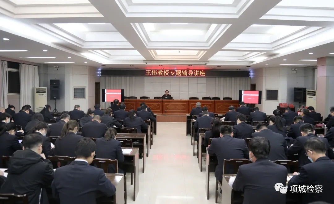 為推動檢察隊伍教育整頓學習教育環節往深里走、往實里去,3月22日晚,項城市檢察院邀請周口市委黨校副教授王偉到“檢察夜校”為干警進行黨建知識專題講座,夯實政治教育根基,提升干警思想政治素質。王偉以《以黨建引領檢察工作高質量發展》為題,從“背景闡釋:深刻認識黨建時代內涵”、“歷史演進:準確把握基層組織作用”“路徑拓展:科學理解基層黨建手段”、“強發展、協調發展、高質量發展。 王偉邊講解邊播放ppt課件。其報告主題鮮明、邏輯清晰,內容豐富、語言生動,旁征博引、貫古通今,深入淺出、通俗易懂,讓干警美美享受一堂黨建教育“大餐”。