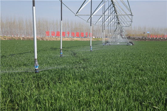十四五規劃和中央一號文件對鄉村振興工作的重視給商水縣各種植專業合作社以極大信心,他們紛紛加大投入,發展智慧農業、高效農業、綠色農業,把藏糧于地、藏糧于技落到實處。天華合作社購進的這6臺設備,機器的一端固定,其他跨體在電機帶動的輪胎上沿順時針或逆時針軌跡行走,用手機即可操作,能用更少的人工、資金和水來提高灌溉效果。
