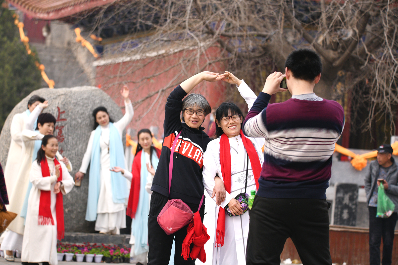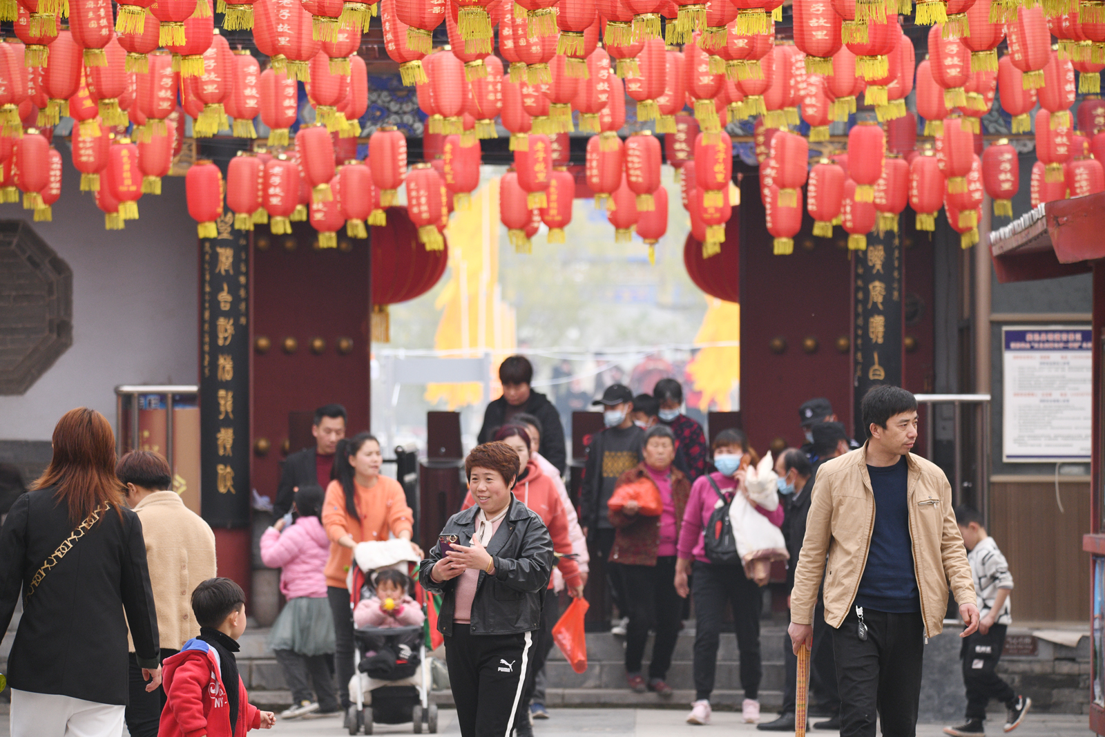 記者在太清宮、明道宮景區看到,景區方面在做好疫情防控的情況下全面開放,迎接為期一個月的老子廟會。游客們則自覺地戴著口罩有序地進入景區游玩、祭拜。