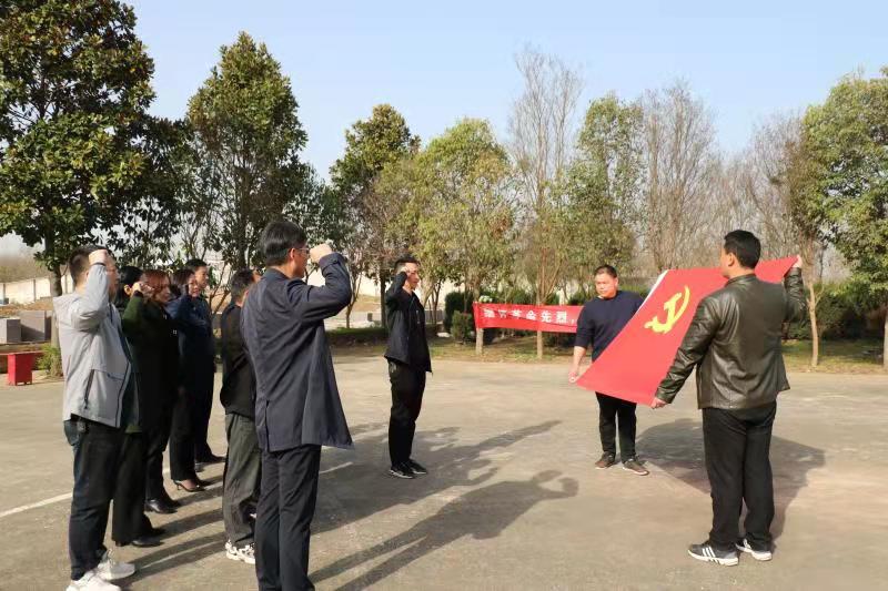 在烈士紀念碑前,副局長朱長安宣讀祭文,干部職工們整齊肅立,懷著無比崇敬的心情向革命烈士默哀,深切緬懷革命烈士的不朽功績,寄托對革命先烈的無限哀思。在鮮紅的黨旗下,黨員重溫入黨誓詞,將黨史學習教育搬進烈士陵園,開展現場教學。