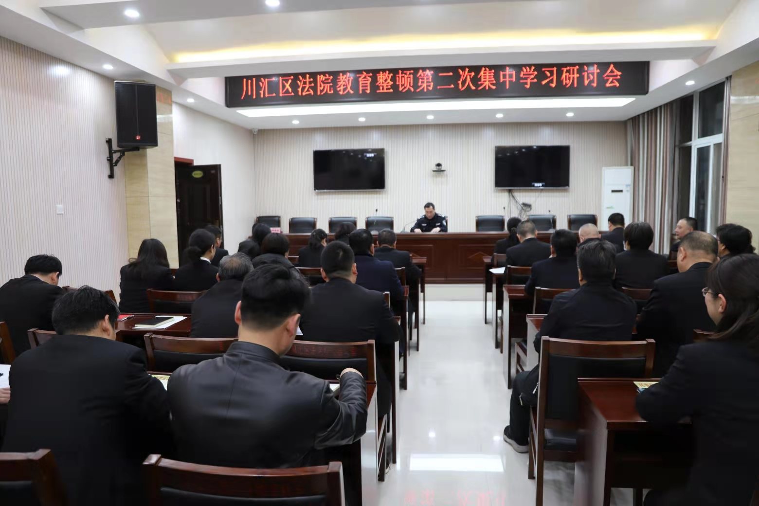3月29日晚,川匯區(qū)人民法院召開隊伍教育整頓第二次集中學(xué)習(xí)研討會,會議由黨組書記、院長劉俊榮主持,全體干警參會。