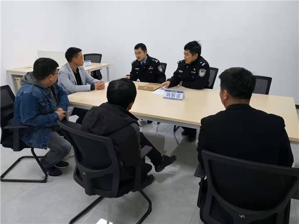 為防止事態擴大,民警周玉博、馬立祥立即責令當事人撤掉條幅、撤離工地,同時向分局領導匯報,開展相關處置情況調查,并向死者家屬宣讀有關法律條款,講明事實,穩定家屬情緒。派出所負責人邵海濤帶領民警深入工地,后經協商三方責任人員,結合新頒布的《民法典》相關條文內容,民警在現場當起了宣講員和調解員。功夫不負有心人。3月27日晚上,民警讓參與飲酒人員、班組負責人、承建單位與死者家屬四方達成調解協議,從而平息了事態,讓企業恢復了正常工作秩序。