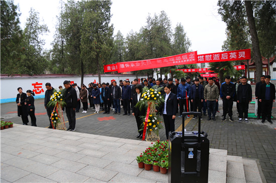 在革命烈士紀念碑前,黨員和志愿者懷著無比崇敬的心情,向烈士紀念碑敬獻花藍,鞠躬默哀,追思革命先烈的奮斗足跡,緬懷革命前輩的豐功偉績。