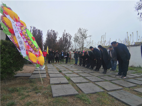 綠樹掩映,豫東特委紀念塔高高佇立,紀念碑前整齊地擺放著鮮花。300余名來自老區的黨員干部、師生代表等在烈士胡曉初墓前靜立默哀、三鞠躬,傾訴哀思,深切緬懷革命先烈的不朽功績。