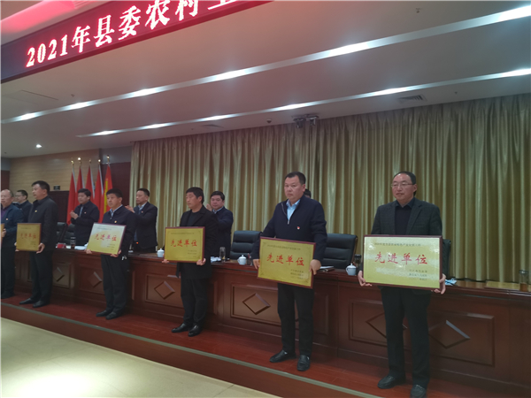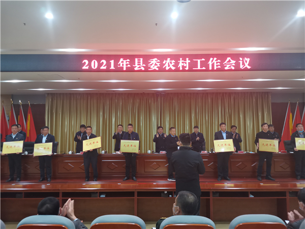 郭俊濤就貫徹落實(shí)會(huì)議精神及下一步農(nóng)村工作進(jìn)行具體安排部署。縣委副書(shū)記許四軍宣讀了縣委、縣政府關(guān)于表?yè)P(yáng)2020年度農(nóng)業(yè)農(nóng)村工作先進(jìn)單位、先進(jìn)個(gè)人的通報(bào)。會(huì)議還對(duì)受表彰的先進(jìn)單位代表進(jìn)行了頒獎(jiǎng)。