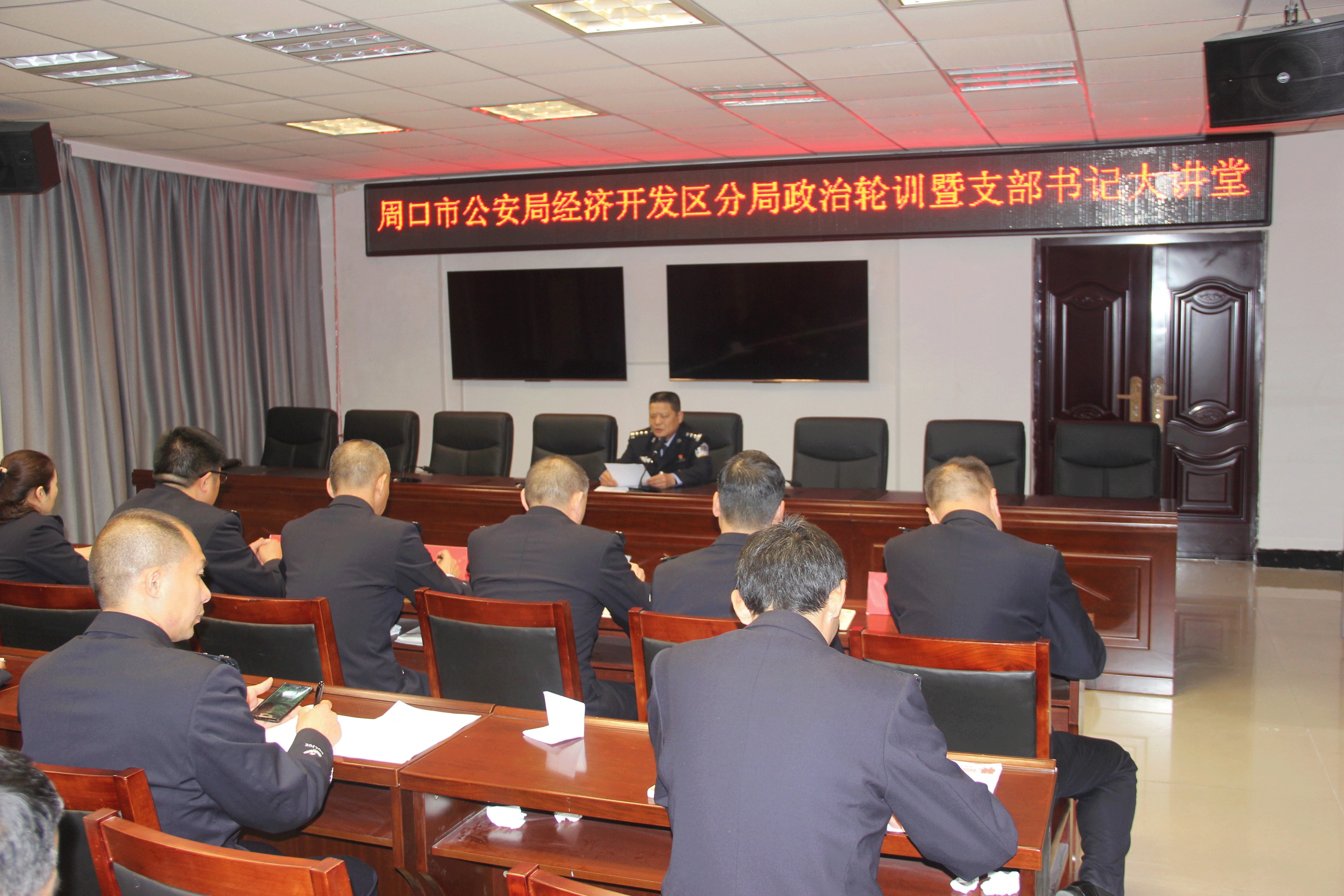 3月29日晚,開發區分局舉辦第一期政治輪訓暨支部書記大講堂,分局黨委副書記、政委岳備戰,黨委副書記、副局長田貽林及局黨委班子成員、各單位負責人、副科級以上民警和各支部書記參加了活動。