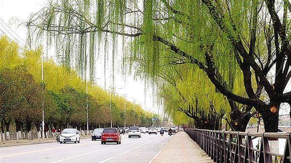 萬畝龍湖湖畔的垂柳新枝嬌柔、婀娜,一個游園接一個游園里的海棠、紅葉李、三角楓和一些叫不出名字的花木滴翠流綠、姹紫嫣紅,處處寫滿春日的詩情畫意。