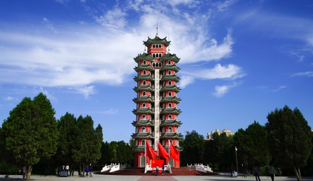 在甘肅省白銀市會寧縣紅軍會寧會師舊址內,有一座高33.33米,呈三塔環抱雄姿的紀念塔——中國工農紅軍第一二四方面軍會師紀念塔。