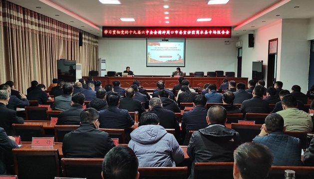12月15日,學習貫徹黨的十九屆六中全會精神周口市委宣講團商水縣專場報告會舉行,市委宣講團成員高鵬作專題宣講報告,縣領導、鄉鎮辦事處和縣直單位主要負責人現場聆聽。