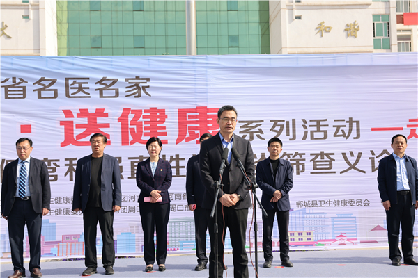 羅文閣致歡迎詞。她說,只有全民健康才有全面小康。今天,河南省在校青少年脊柱側彎和強直性脊柱炎篩查義診活動走進鄲城,對鄲城孩子們的健康成長是件好事、實事,我們將全力以赴,做好配合,爭取讓項目惠及更多患者,同時希望全縣廣大醫護工作者以這次活動為契機,珍惜難得的學習機會,從名醫名家身上,學習出類拔萃的醫療技術、德藝雙馨的大醫情懷、心系群眾的高尚情操、不辭勞苦的敬業精神,不忘初心、牢記使命,勤學苦練、提升本領,為鄲城創建國家健康縣城、做好鞏固拓展脫貧攻堅成果同鄉村振興有效銜接作出更大貢獻。