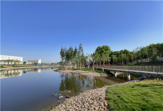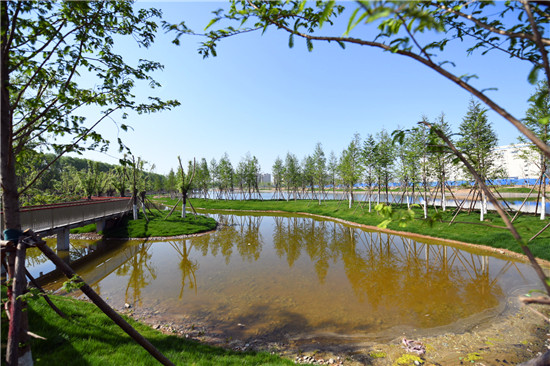 與城區的各個游園相比,此處稍顯僻靜,翠陰蒙密,再加上流水淙淙,更有風物清幽之感。閑暇之時,三三兩兩的居民結伴散步,大自然的靜謐與靈動在這里相交相融,讓人心曠神怡。
