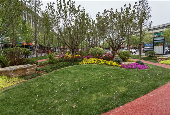 拆墻透綠、見縫插綠,小小空間、自有風景。每次路過這里,清風徐徐,清香撲鼻。鵝黃、碧綠、深紅、淺紅、雪白、藍紫……樹木和花草呈現出斑斕的色彩,讓人看得心情愉悅。這姹紫嫣紅的花兒不僅開在了游園里,更是開在了市民的心田里。