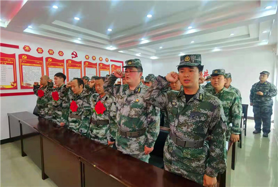 街道黨工委委員、武裝部長陳偉亞作工作報告、宣讀民兵干部任職命令,呼點、提問基干民兵隊員,并帶領全體民兵進行宣誓。同時新入隊民兵代表曹香龍做了發言。③7