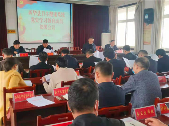 為深入學習貫徹習近平總書記在黨史學習教育動員大會上的重要講話精神,貫徹落實省、市、縣黨史學習教育動員大會精神。4月22日上午,西華縣衛健委在五樓會議室召開“全縣衛生健康系統黨史學習教育動員部署會議”,衛健委全體班子成員,中層以上干部,各鄉鎮衛生院院長、社區衛生服務中心主任,縣直各衛生健康單位負責人,各黨支部書記,各民營行業醫院院長參加會議。