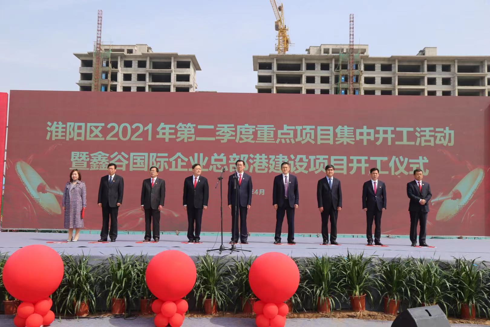 4月27日,淮陽區2021年第二季度重點項目集中開工儀式在鑫谷國際企業總部港建設項目工地舉行。當天,32個總投資近140億元的重點項目集中開工。市政協副主席、淮陽區委書記馬明超下達開工令。區領導王毅、胡東河、蘇中林、馬自成、董鴻、鄒松、朱希炎、齊長軍等出席開工儀式。