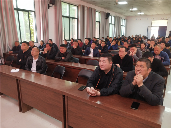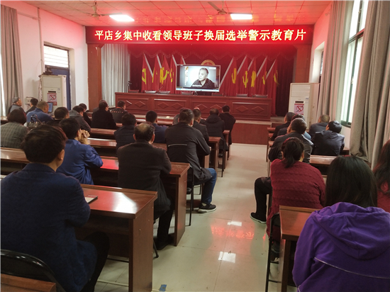 4月28日上午8點鐘,商水縣平店鄉政府大禮堂座無虛席,該鄉正在組織全體黨員干部職工、駐村第一書記隊員集中觀看《警鐘—遼寧拉票賄選案警示錄》警示教育片。